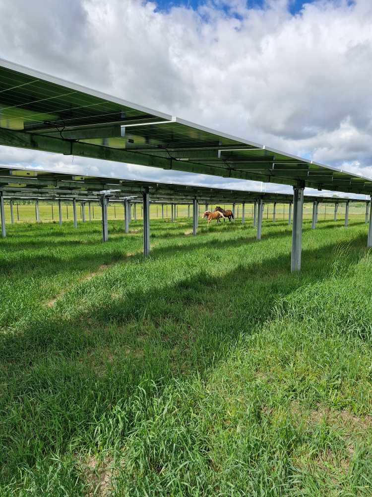 Die Module sind hochaufgeständert – landwirtschaftliche Nutzung bleibt vollständig erhalten.